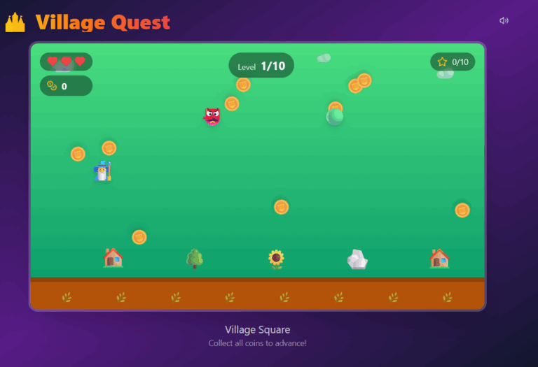 Embark on an exciting adventure through a whimsical village and its surrounding lands. Collect shimmering coins, outsmart mischievous enemies, and explore beautifully crafted environments. With 10 unique levels, each offering its own charming scene and fun challenges, Coin Collector Quest is a delightful journey made for players of all ages.