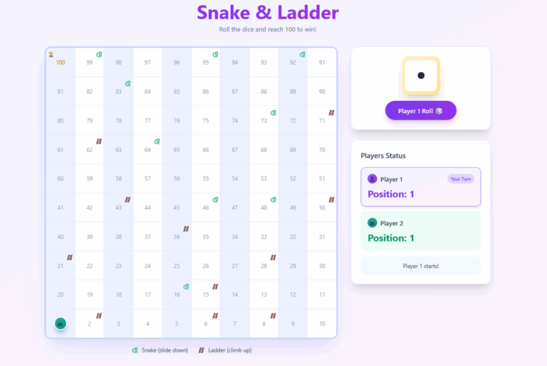 Snakes and Ladders is a classic board game played by children and families around the world. Players roll a dice and move their tokens across numbered squares, climbing ladders to move ahead and sliding down snakes when they land on them. The game is simple, fun, and based purely on luck. It also teaches patience and sportsmanship in a playful way.