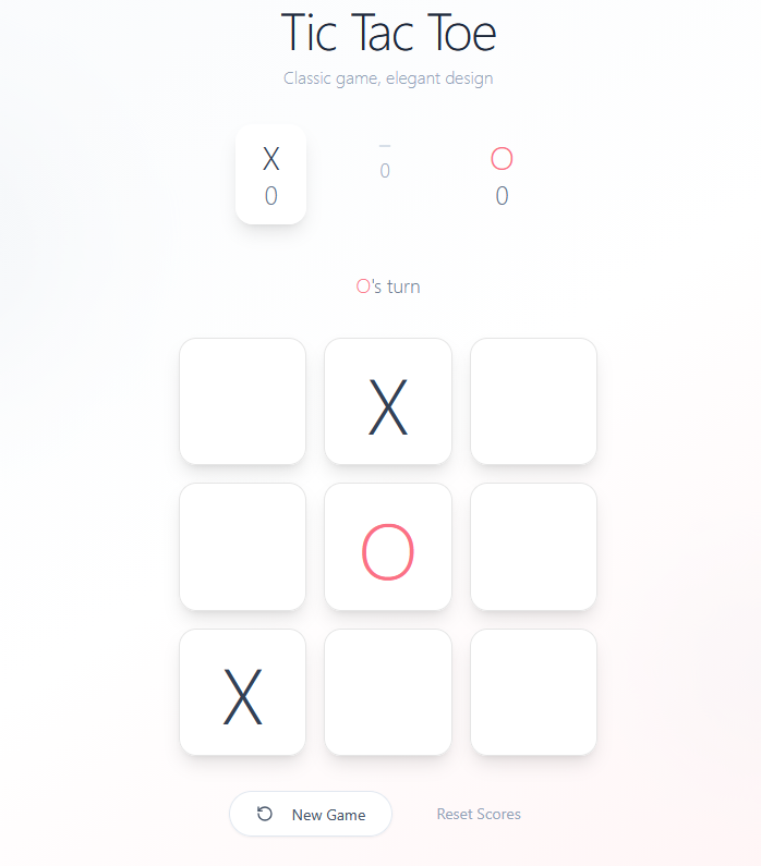 Tic Tac Toe Master is a beautifully designed version of the classic game, featuring a clean and responsive interface that looks great on any device. Keep track of your wins with intuitive score tracking, and enjoy smooth, engaging gameplay that challenges your strategic skills. Perfect for quick fun or friendly competition!